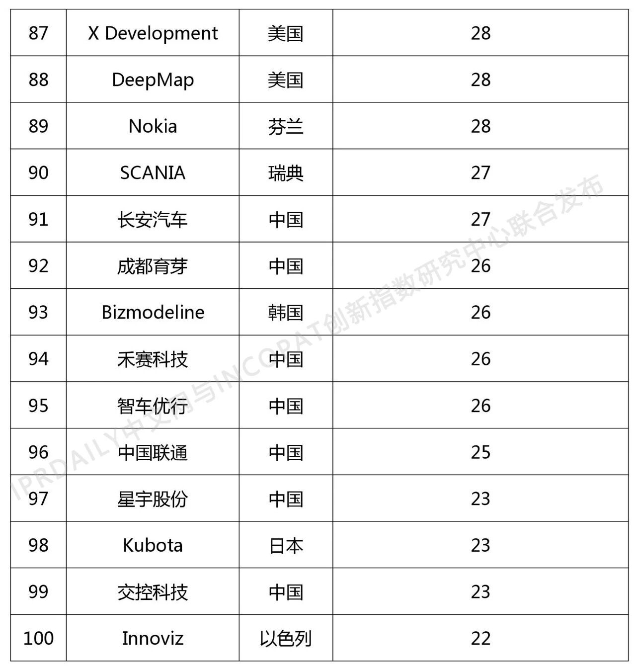 近日,全球影响力的知识产权媒体IPRdaily联合incoPat创新指数研究中心发布“2018年全球自动驾驶技术发明专利排行榜(TOP 100)”,数据范围为截止2018年1月1日至2018年12月31日,2018年公开的全球自动驾驶技术发明专利申请数量。